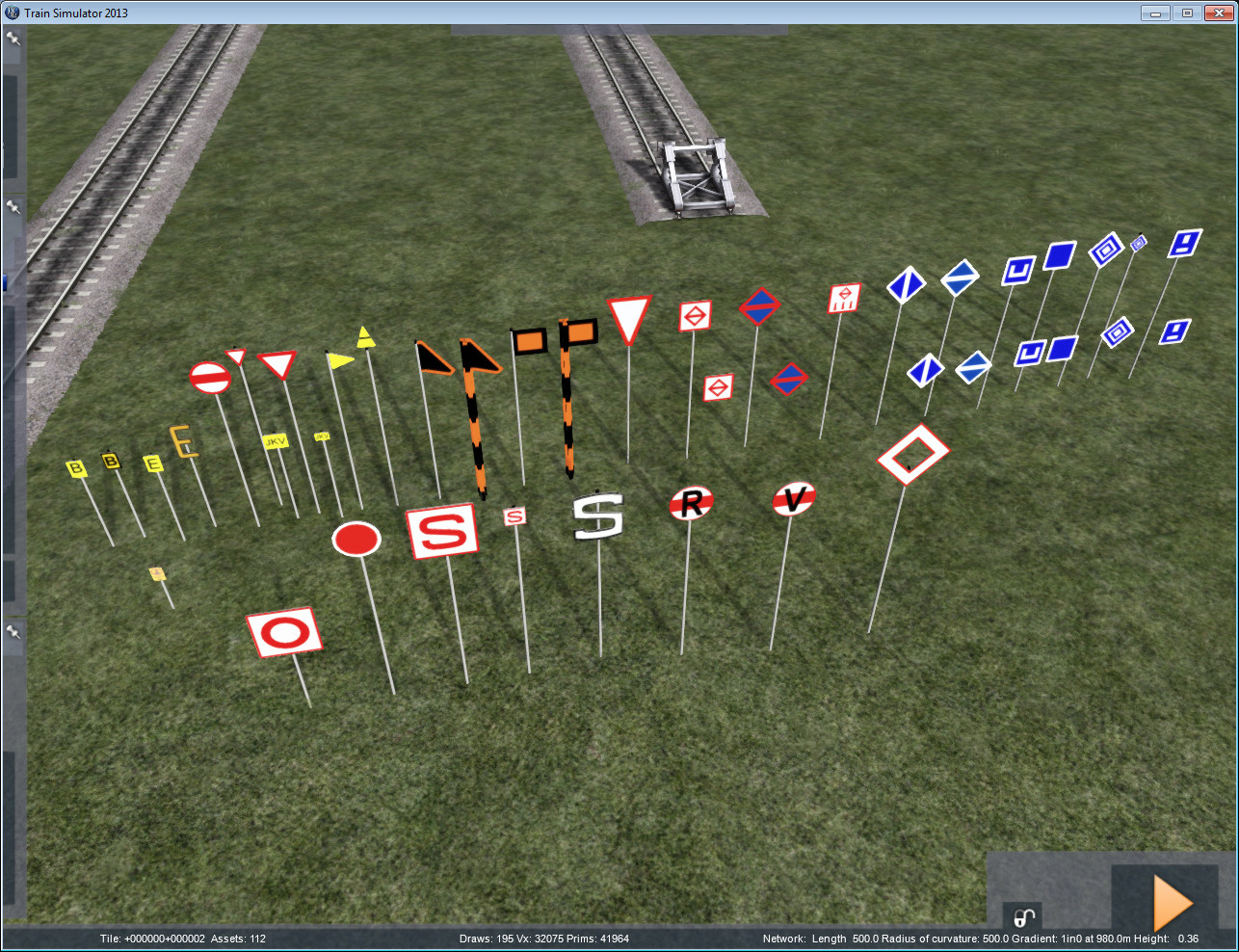 Jatketaan vielä, kaikenlaisia melko tärkeitäkin radanvarren merkkejä puuttuu toistaiseksi Trainzista. Railworksiin on Jpl:n toimesta tehty aika kattava määrä merkkejä (kuva), tekijältä voisi varmaan tiedustella mahdollisuutta noiden siirtämiseksi myös Trainziin.